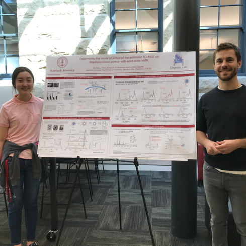 Kyle and Michelle, mentored by graduate students Josh and Joe, wrap up their summers of research with poster presentations at the Summer Undergraduate Research Program in Chemistry Symposium.